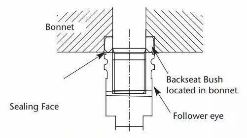 后座的原理只能在不太可能發(fā)生壓蓋泄漏的情況下使用,以將壓蓋與系統(tǒng)壓力隔離,直到工廠停機(jī)并進(jìn)行維修。在任何情況下,為了修理有問(wèn)題的密封壓蓋,都不應(yīng)在系統(tǒng)受壓的情況下取出后座。在正常操作下,閥門(mén)只能打開(kāi)到后座的3mm內(nèi)。