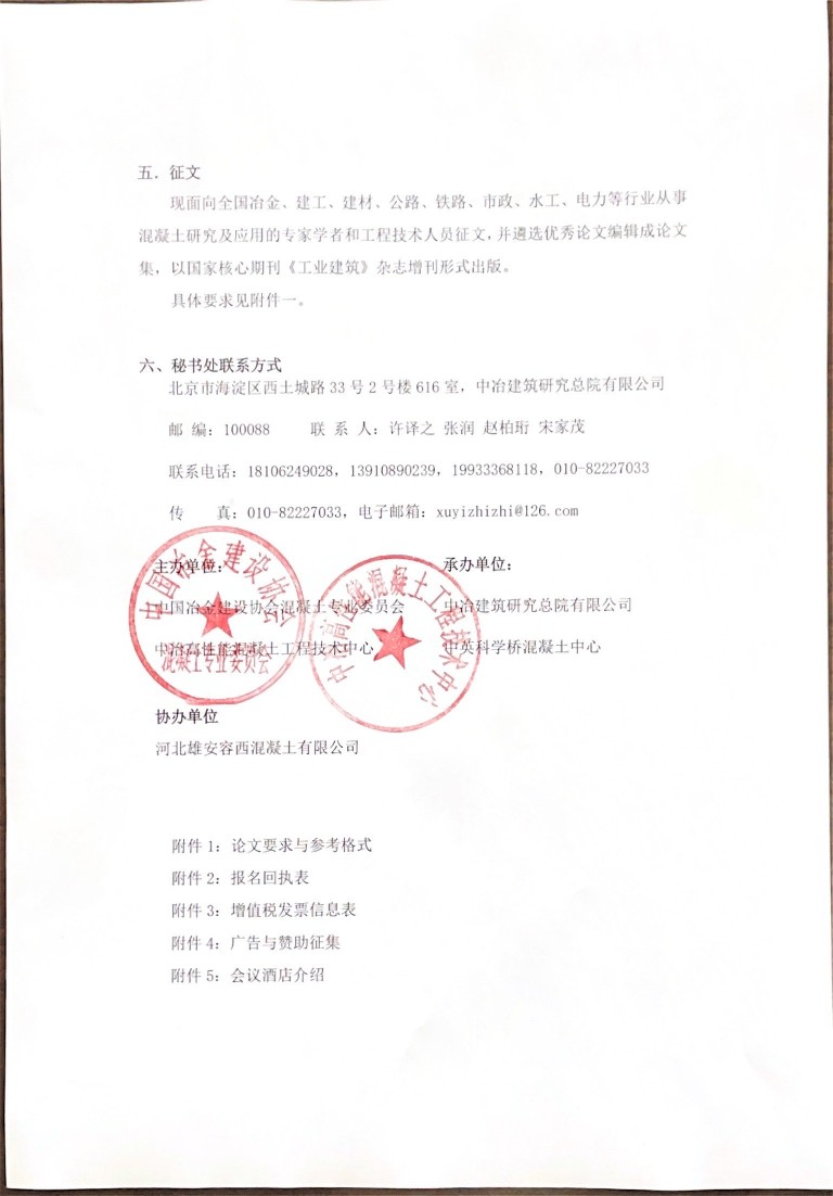 本次會(huì)議由中國(guó)冶金建設(shè)協(xié)會(huì)混凝土專(zhuān)業(yè)委員會(huì)、中冶高性能混凝土工程技 術(shù)中心共同主辦,中冶建筑研究總院高性能混凝土研究院等承辦,河北雄安容西 混凝土有限公司協(xié)辦。