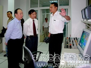 中冶集團(tuán)董事長(zhǎng)楊長(zhǎng)恒到中國(guó)十八冶現(xiàn)場(chǎng)調(diào)研。圖為楊長(zhǎng)恒(左一)在中國(guó)十八冶江北混凝土工程分公司聽(tīng)取匯報(bào)?! ?/FONT>蘭建國(guó) 攝