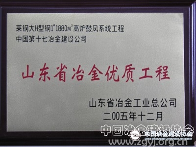 日前,中國(guó)第十七冶金建設(shè)公司承建的山東省萊鋼大H型鋼1880m3鼓風(fēng)機(jī)系統(tǒng)工程,榮獲山東省“冶金優(yōu)質(zhì)工程”。 顧先貴/攝