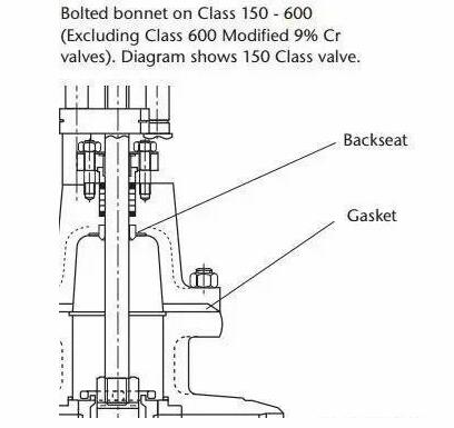 后座的原理只能在不太可能發(fā)生壓蓋泄漏的情況下使用,以將壓蓋與系統(tǒng)壓力隔離,直到工廠停機(jī)并進(jìn)行維修。在任何情況下,為了修理有問(wèn)題的密封壓蓋,都不應(yīng)在系統(tǒng)受壓的情況下取出后座。在正常操作下,閥門(mén)只能打開(kāi)到后座的3mm內(nèi)。