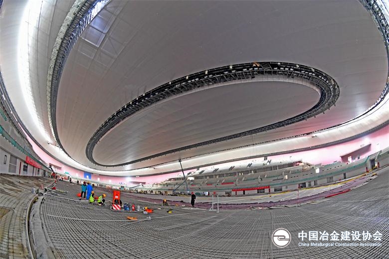 10月15日,建設(shè)者們正在北京冬奧會(huì)標(biāo)志性場館——國家速滑館內(nèi)鋪設(shè)太鋼不銹鋼螺紋鋼筋。